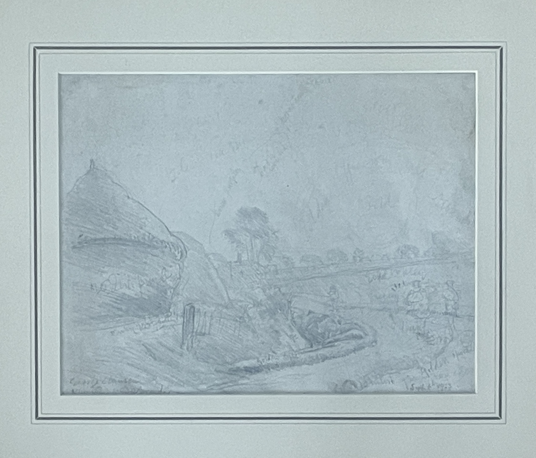 George Clausen Ricks in a Lane Pencil Signed and annotated - and dedicated to R. O. Alexander Image: 8” x 12” Frame: 16” x 20” Sir George Clausen RA RWS RI ROI (18 April 1852 – 22 November 1944) was a British artist working in oil and watercolour, etching, mezzotint, drypoint and occasionally lithographs. He was knighted in 1927. Clausen became one of the foremost modern painters of landscape and of peasant life, influenced to a certain extent by the Impressionists, with whom he shared the view that light is the real subject of landscape art.His pictures excel in rendering the appearance of things under flecking outdoor sunlight, or in the shady shelter of a barn or stable.