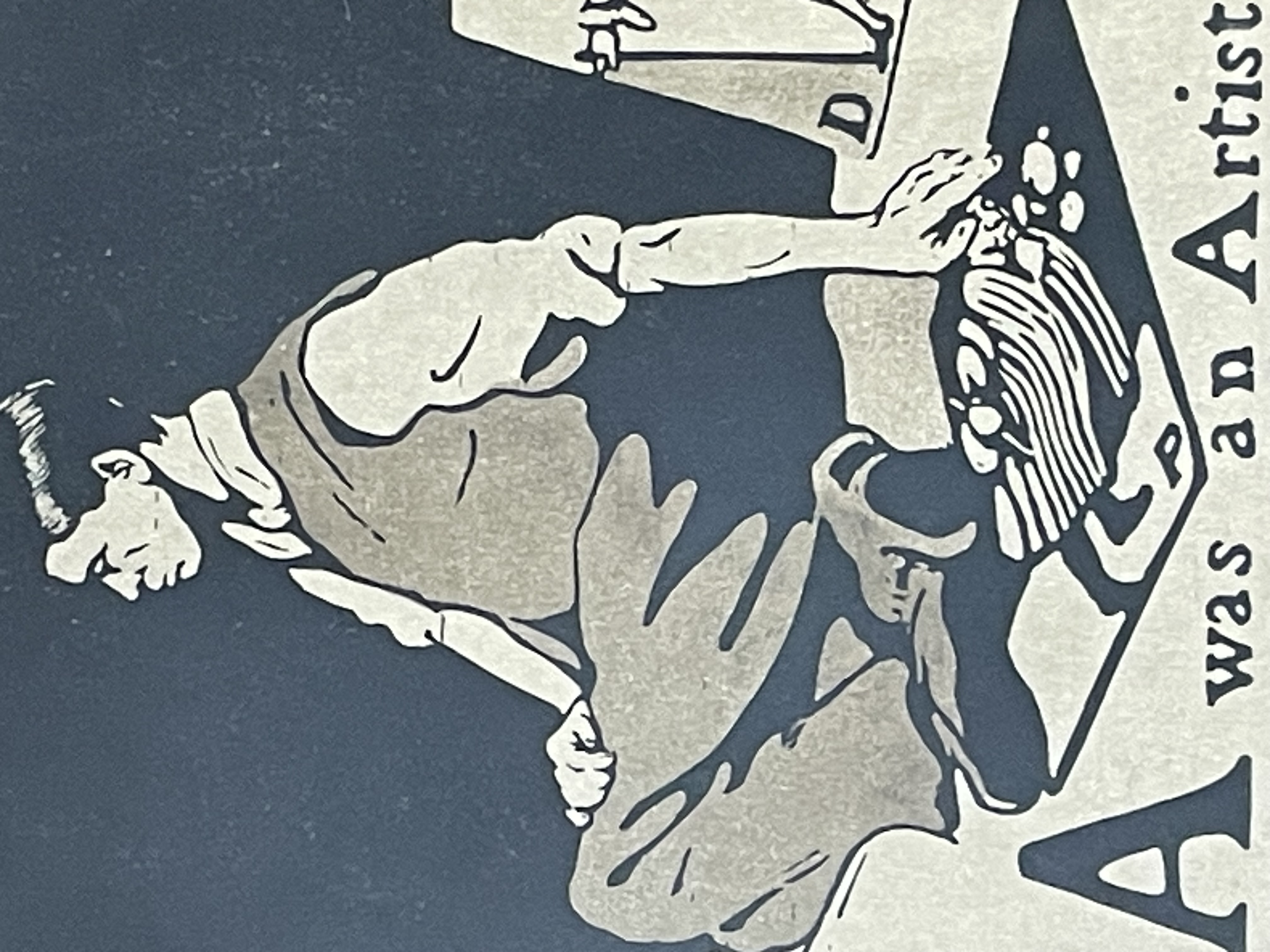 A was an Artist William Nicholson Lithograph from 'An Alphabet'. Frame: 19” x 17” Image: 10” x 8” 'A was an Artist' is a self-portrait. William Nicholson was born at Newark in 1872. He left to study in Paris in his late teens for six months at the Academie Julian before returning to England. In 1893 Nicholson married the painter Mabel Pryde and their first son Ben went on to become the famous painter and sculptor. Nicholson concentrated on printmaking with his brother-in-law James Pryde under the pseudonym of J.& W.Beggarstaff. In 1897 Nicholson made a woodcut of Queen Victoria which established his name with the public. During the same year he worked upon An Illustrated Alphabet for the publisher William Heinemann, important in providing Nicholson with an opportunity to develop his talents as an engraver. He was appointed a Trustee of the Tate Gallery from 1934-39 and knighted in 1936.