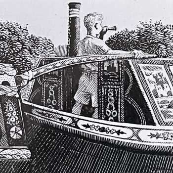 Charles Tunnicliffe Boy with Narrowboat Pencil on paper An illustration for Roving with Nomad by Norman Ellison in which Nomad and his young nephew explore the Inland Waterways on a converted narrowboat Frame: 8” x 12” Image: 5” x 8” Charles Frederick Tunnicliffe, OBE, RA (1 December 1901 – 7 February 1979 )was an internationally renowned naturalistic painter of British birds and other wildlife. He spent most of his working life on the Isle of Anglesey. He is popularly known for his illustrations for the novel Tarka the Otter.
